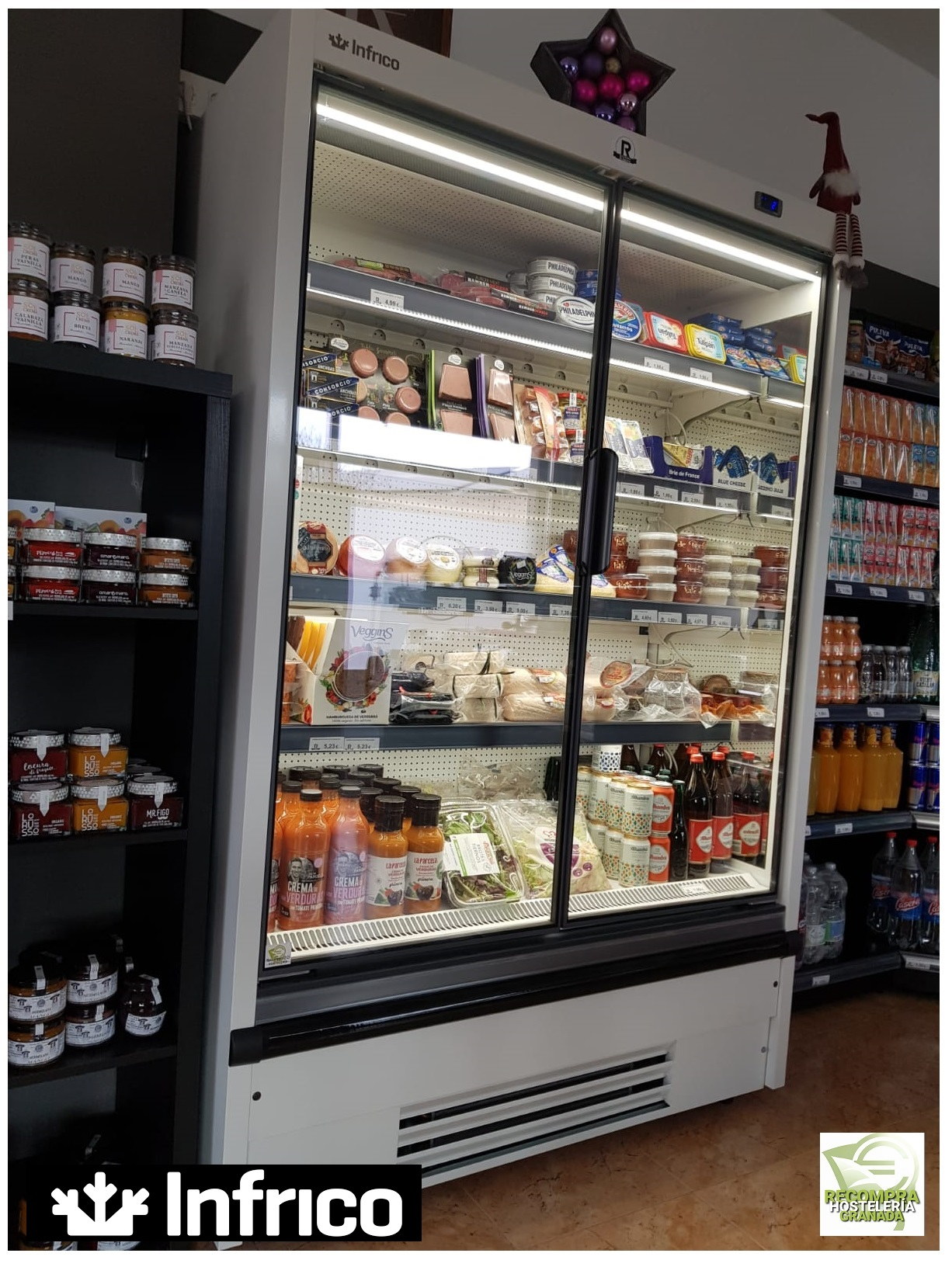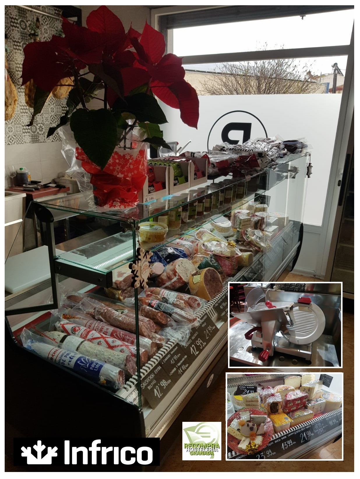 Recompra Hostelería Granada hemos equipado el local con maquinaria específica como: maquinaria de refrigeración expositora de Infrico, máquina corta fiambres italiana, envolvedora de film, y TPV para el mostrador de la mano de MundoTPV.